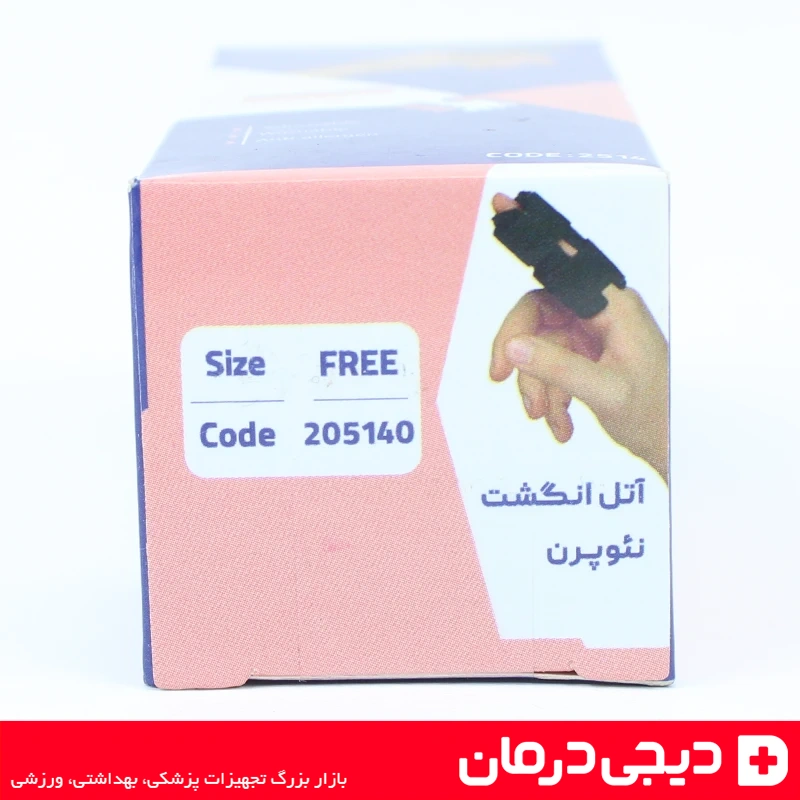 عکس نمای جانبی بستهبندی آتل انگشت نئوپرن هوش درمان کد 205140. محصولی Free Size، سبک و ضد حساسیت. خرید آنلاین از دیجی درمان.