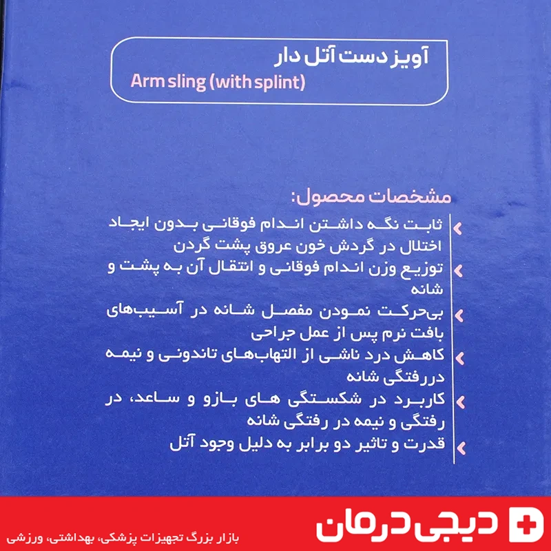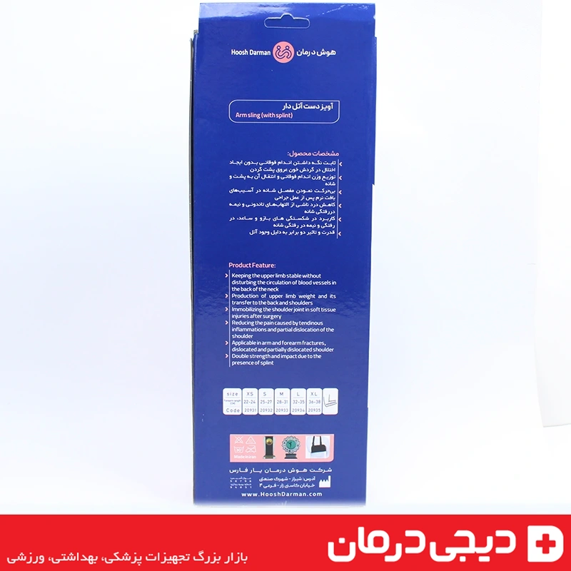 آویز دست آتل دار هوش درمان Hoosh Darman Arm Sling with Splint محصولی باکیفیت و تولید ایران است که با طراحی استاندارد و استفاده از مواد اولیه مرغوب، نقش مهمی در بهبود بیماران ایفا میکند.