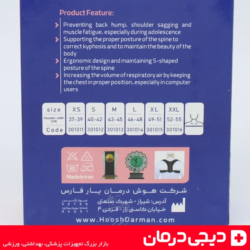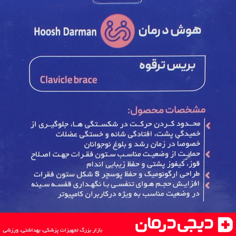 بریس ترقوه هوش درمان (Hoosh Darman Clavicle Brace) یک وسیله ارتوپدی کاربردی است که برای اصلاح فرم بدن، جلوگیری از افتادگی شانهها و کاهش قوز پشت طراحی شده است.