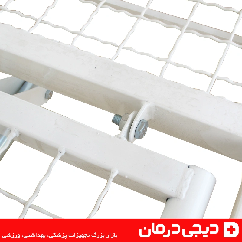 شبکه زیر تشک به صورت مشبندی فلزی طراحی شده تا جریان هوا حفظ شود و رطوبت در زیر بیمار جمع نشود.