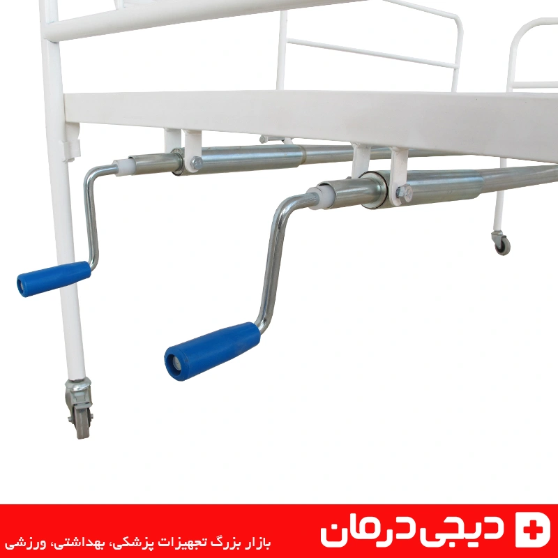این تخت بیمارستانی با استفاده از دو اهرم مکانیکی (کرنک) به کاربر یا پرستار اجازه میدهد تا زاویه قسمتهای پشت و پا را بهصورت دستی تنظیم کند.