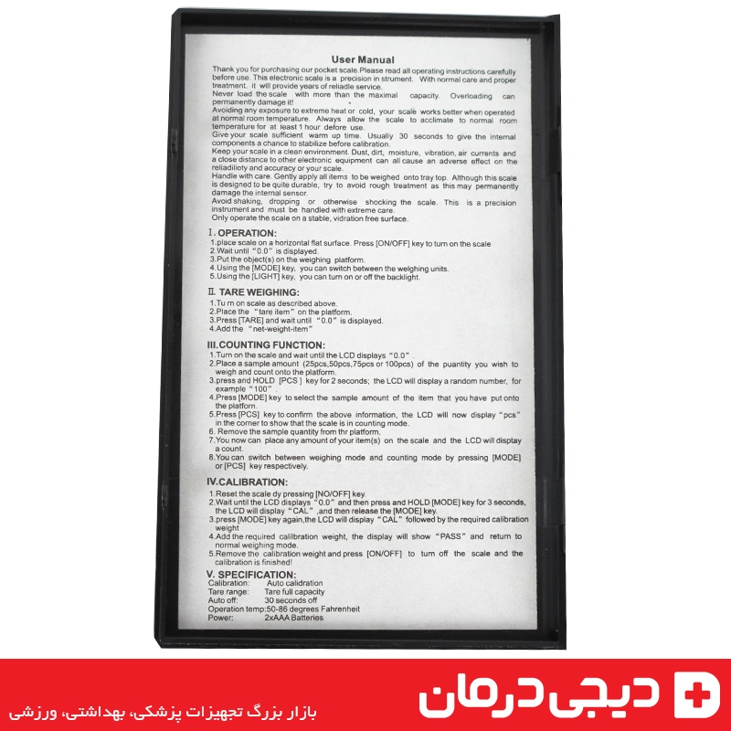 | دقت اندازهگیری | 0.1 گرم |