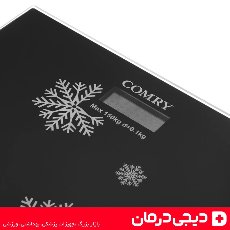 عکس کامل ترازو دیجیتال کمری COMRY از نمای بالا با طراحی شیشه سکوریت و طرح برفی شیک
