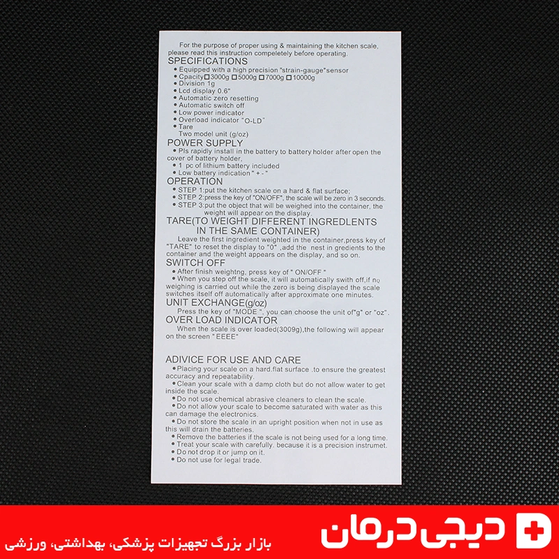 مناسب برای آشپزها ، بدنسازان ، بیماران دیابتی و همه افرادی که نیاز به اندازه گیری دقیق دارند .