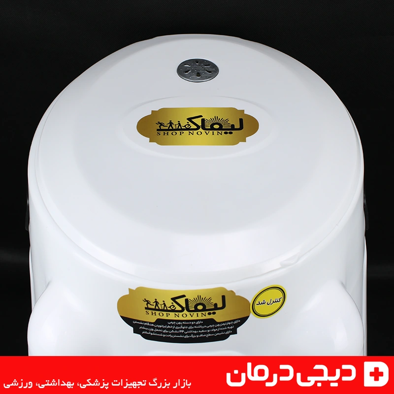 توالت فرنگی سیار لیماک سفید دارای برچسب کنترل کیفیت و لوگوی رسمی برند لیماک ، مناسب سفر و استفاده خانگی .