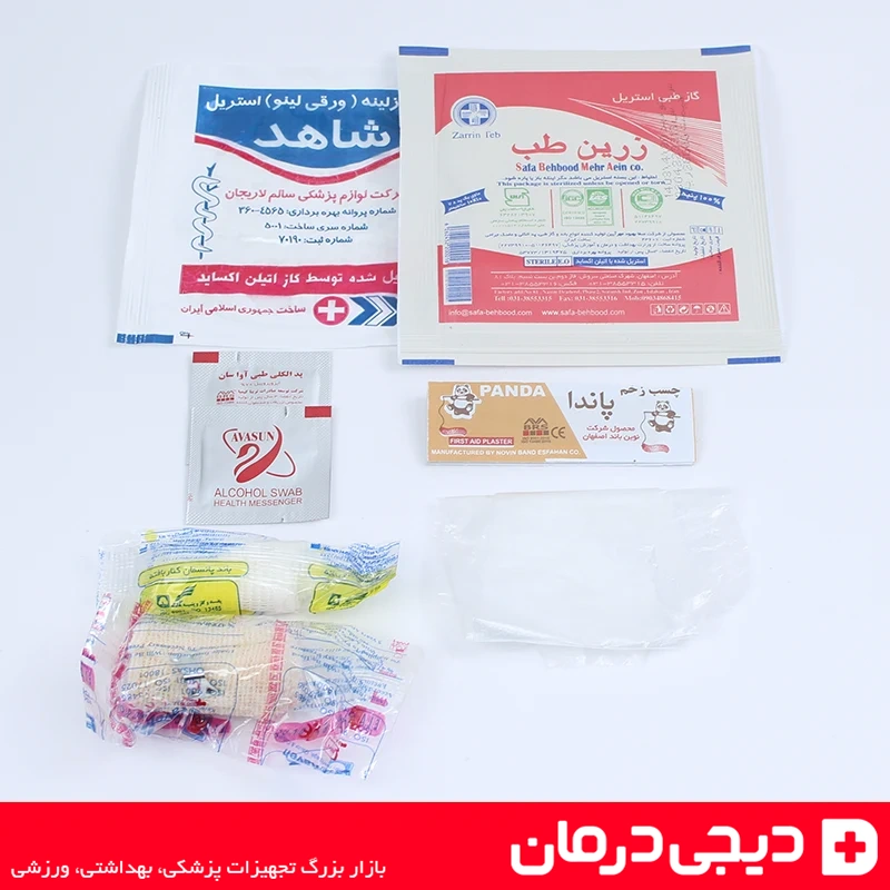 شامل وسایل ضروری کمکهای اولیه: باند، گاز استریل، پد الکلی، دستکش و …