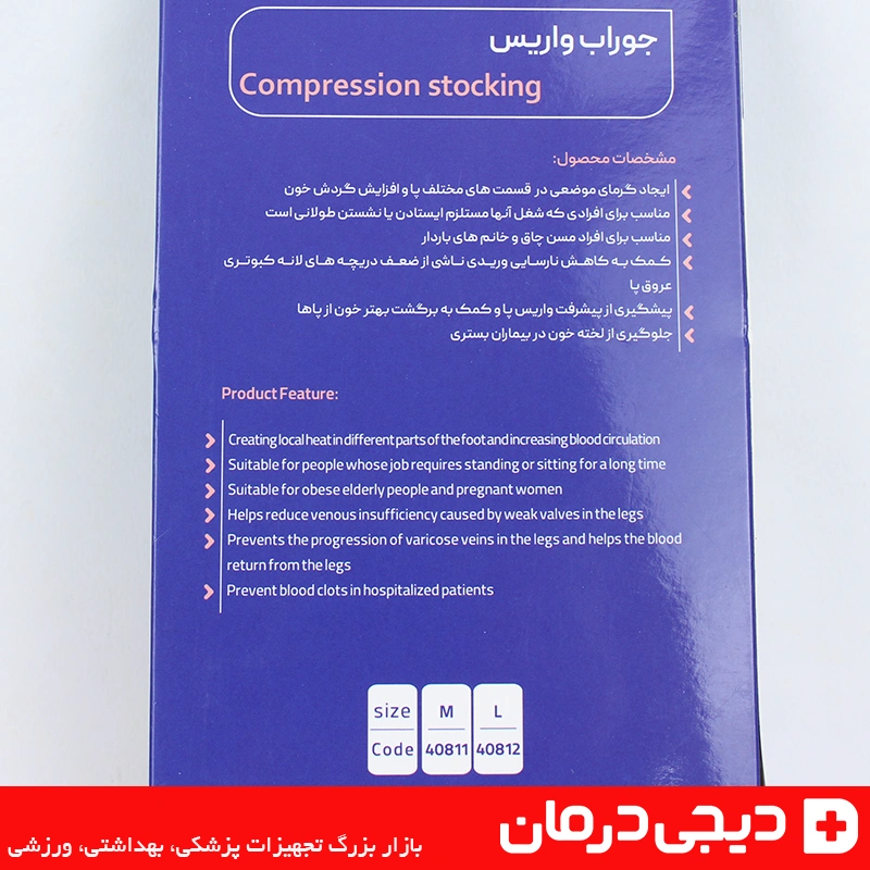 این جوراب با طراحی علمی و فشار مناسب ، مانع از تورم ، خستگی و واریس پا می شود و با قیمت مناسب در فروشگاه دیجی درمان در دسترس است .