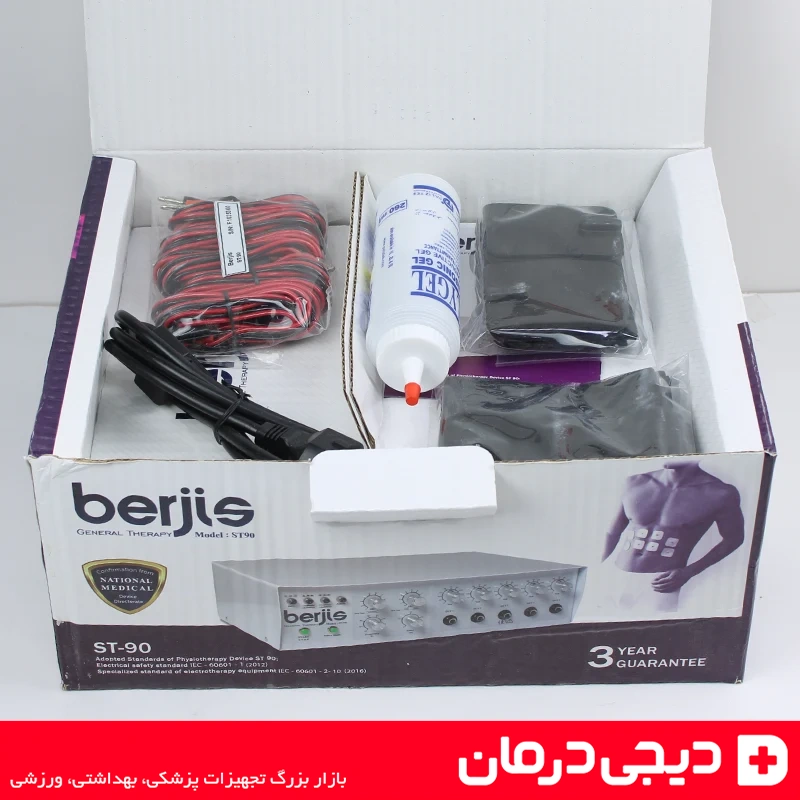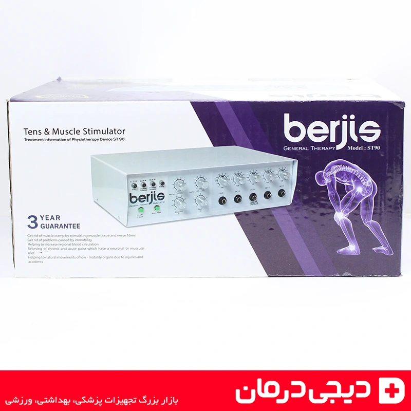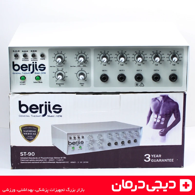 دستگاه فیزیوتراپی 5 کانال برجیس Berjis ST90 که با نامهای دستگاه تنس برجیس 5 کانال، دستگاه فیزیوتراپی خانگی برجیس ST90 و دستگاه فارادیک برجیس نیز شناخته میشود، یکی از حرفهایترین تجهیزات توانبخشی و درمانی است که برای تحریک عصب و عضله، کاهش دردهای مزمن، تقویت عضلات و بهبود گردش خون طراحی شده است.