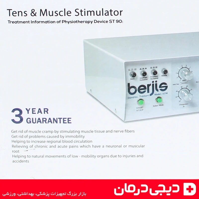 در فروشگاه اینترنتی تجهیزات پزشکی تجهیزات پزشکی دیجی درمان، شما میتوانید دستگاه فیزیوتراپی 5 کانال berjis st90 را با گارانتی معتبر سه ساله و ارسال فوری به سراسر کشور تهیه کنید.