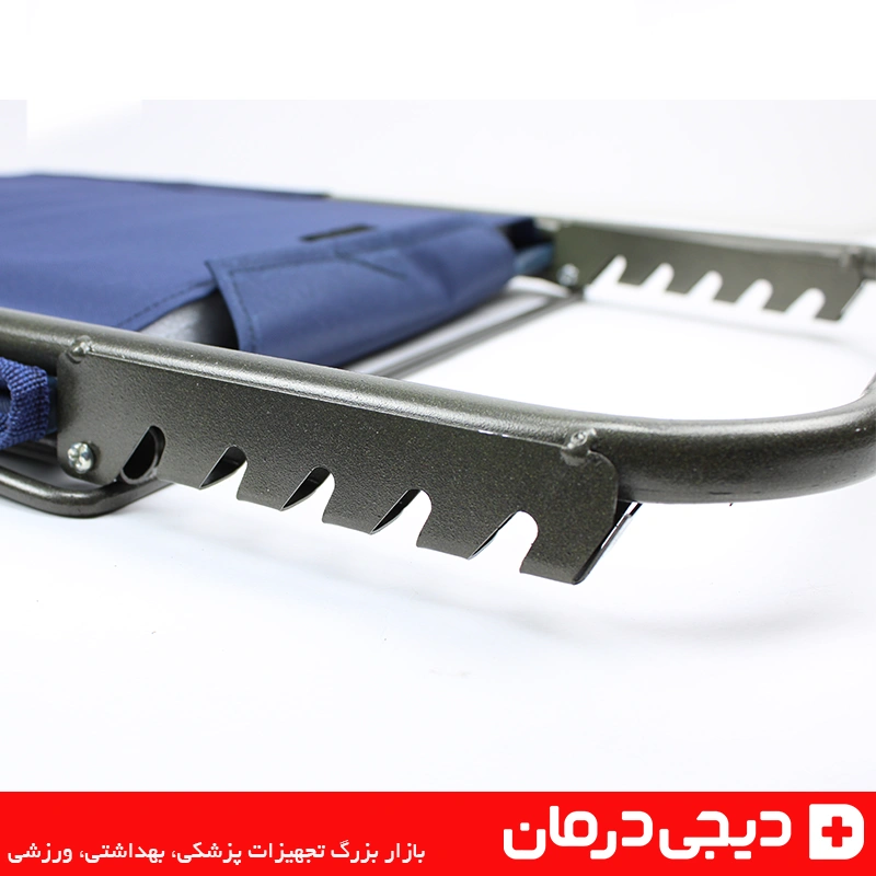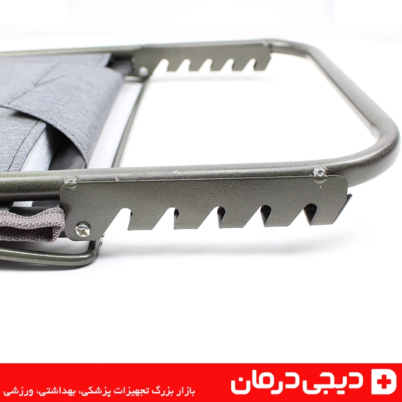 مکانیزم تنظیم زاویه دارای پنج شیار فلزی مقاوم است که پشتی در هر زاویه دلخواه روی آن قفل میشود. این طراحی ساده و درعین حال کاربردی، امکان استفاده آسان حتی برای سالمندان را فراهم میکند.