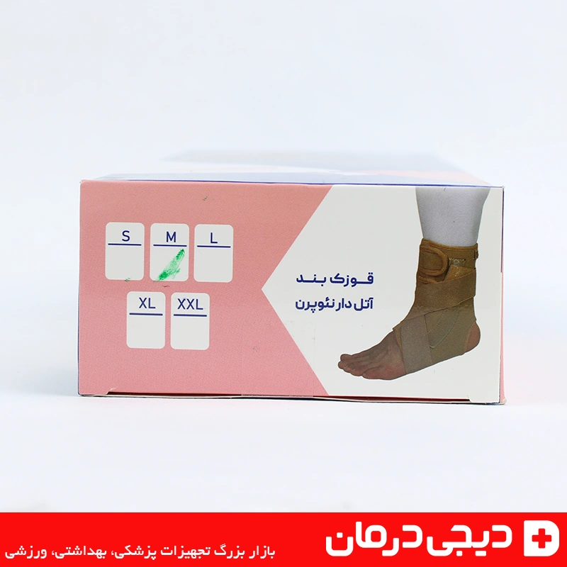 بسته بندی قوزک بند آتل دار نئوپرن هوش درمان مناسب حمایت از مچ پا و درمان پیچ خوردگی از فروشگاه تجهیزات پزشکی دیجی درمان