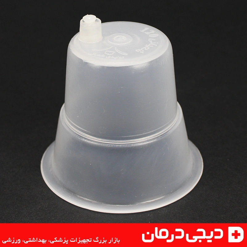 نمای نزدیک از لیوان حجامت شعبانی سایز 120 با جنس پلاستیک شفاف و کیفیت بالا، مناسب بادکش درمانی و حجامت سرد، موجود در دیجی درمان.