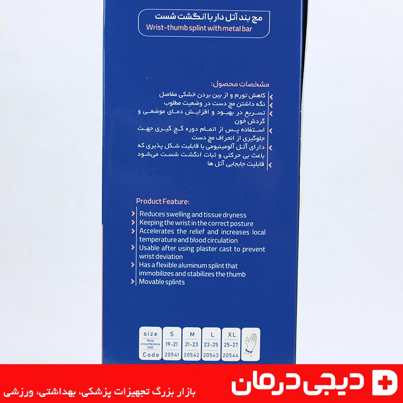 مچ بند آتل دار هوش درمان برای ثابت نگه داشتن مفصل مچ و انگشت شست طراحی شده است . این وسیله با پشتیبانی از مفصل ها ، از انحراف ، درد و التهاب جلوگیری می کند . وجود آتل آلومینیومی در ساختار داخلی باعث می شود مچ در وضعیت طبیعی خود باقی بماند و به بهبود سریع تر کمک کند .