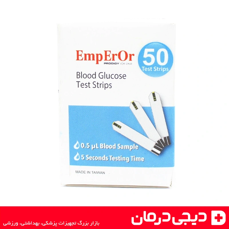 نوار تست قند خون خانگی امپرور 50 عددی اصل تایوانی Emperor، مناسب بیماران دیابتی با قیمت مناسب و خرید آسان از دیجی درمان.
