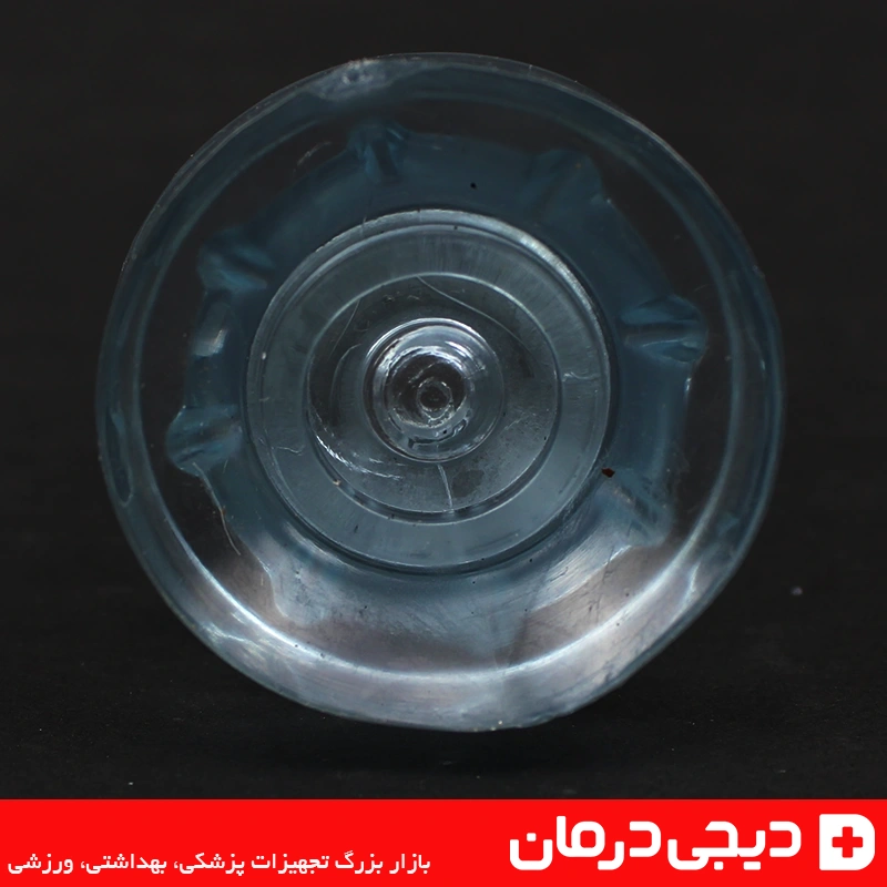 تصویر بالایی پاشنه عصا سیلیکونی واشردار ضد لغزش، ساخته شده از سیلیکون شفاف مقاوم. مناسب انواع عصای طبی، عرضه شده در دیجی درمان.