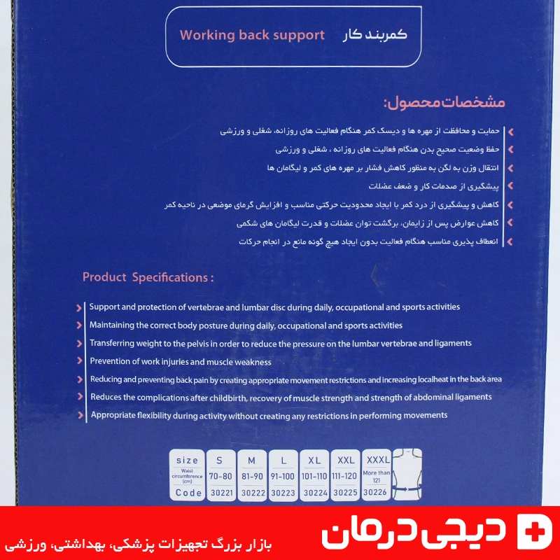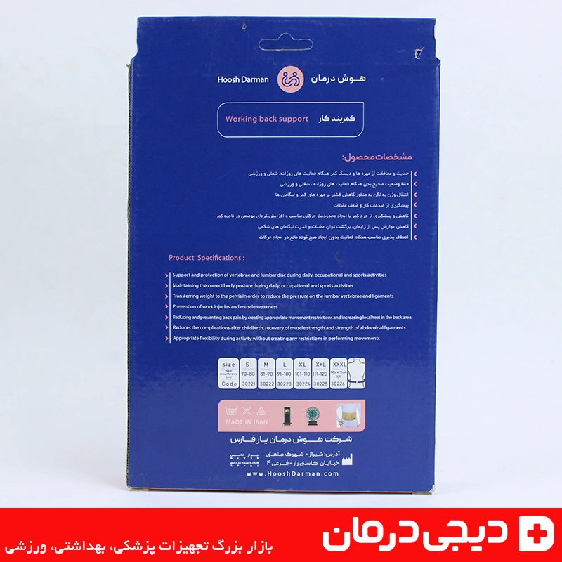 اگر به دنبال محافظت از کمر ، کاهش درد و افزایش بهره وری کاری هستید ، پیشنهاد ما خرید این محصول از فروشگاه تجهیزات پزشکی دیجی درمان است .