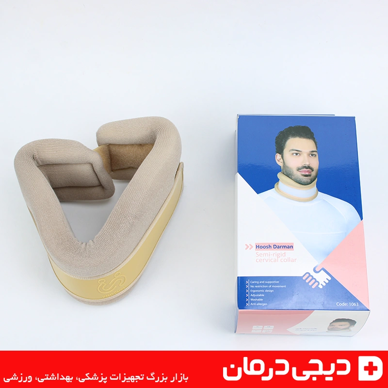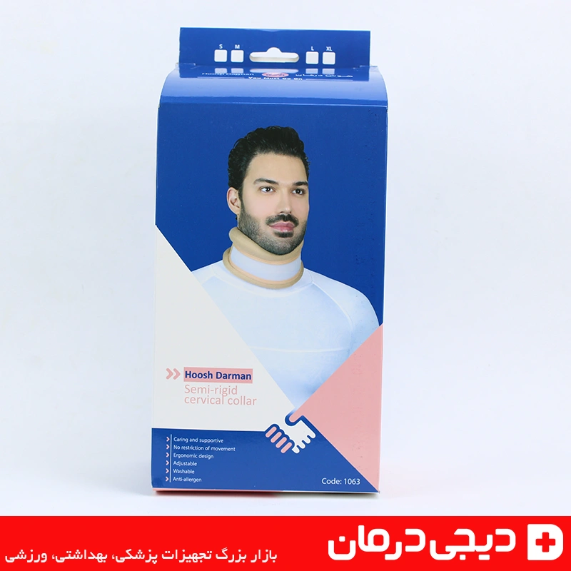 گردنبند طبی نیمه سخت هوش درمان (Hoosh Darman Semi-Rigid Cervical Collar) محصولی ایرانی با کیفیت بالا است که برای حمایت ستون فقرات گردنی و ثابت نگه داشتن مهره ها طراحی شده است.