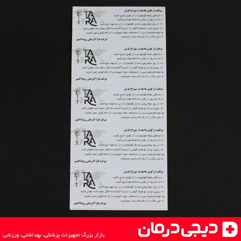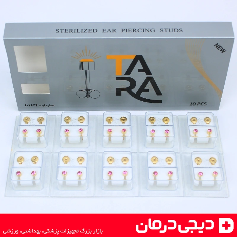 گوشواره طبی صورتی تارا TARA یک وسیله پزشکی استریل و ضد حساسیت است که برای سوراخ کردن گوش استفاده میشود.