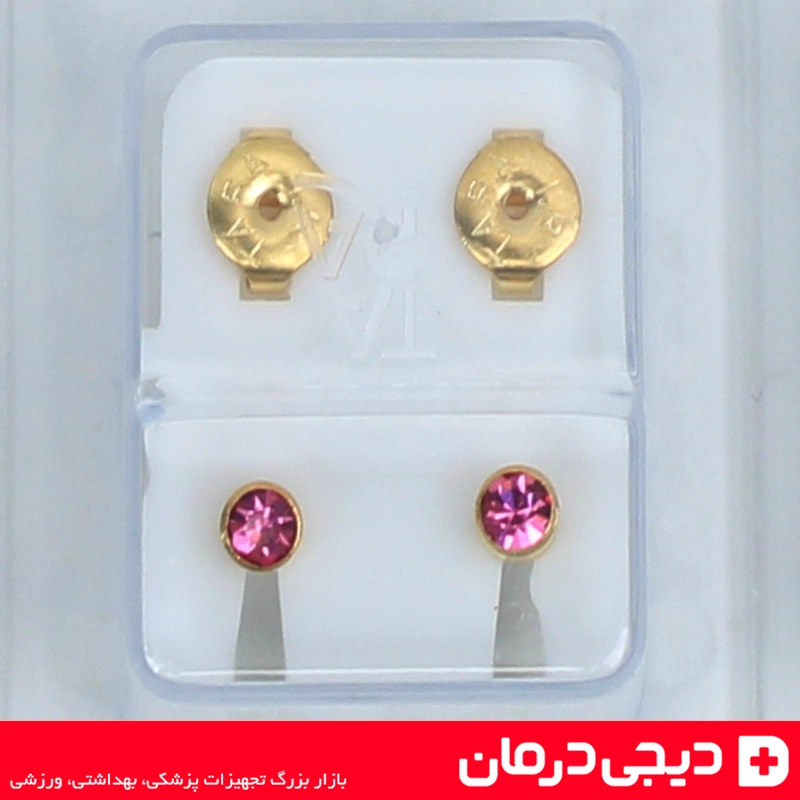 گوشواره طبی صورتی تارا TARA بسته 2 عددی روکش طلا